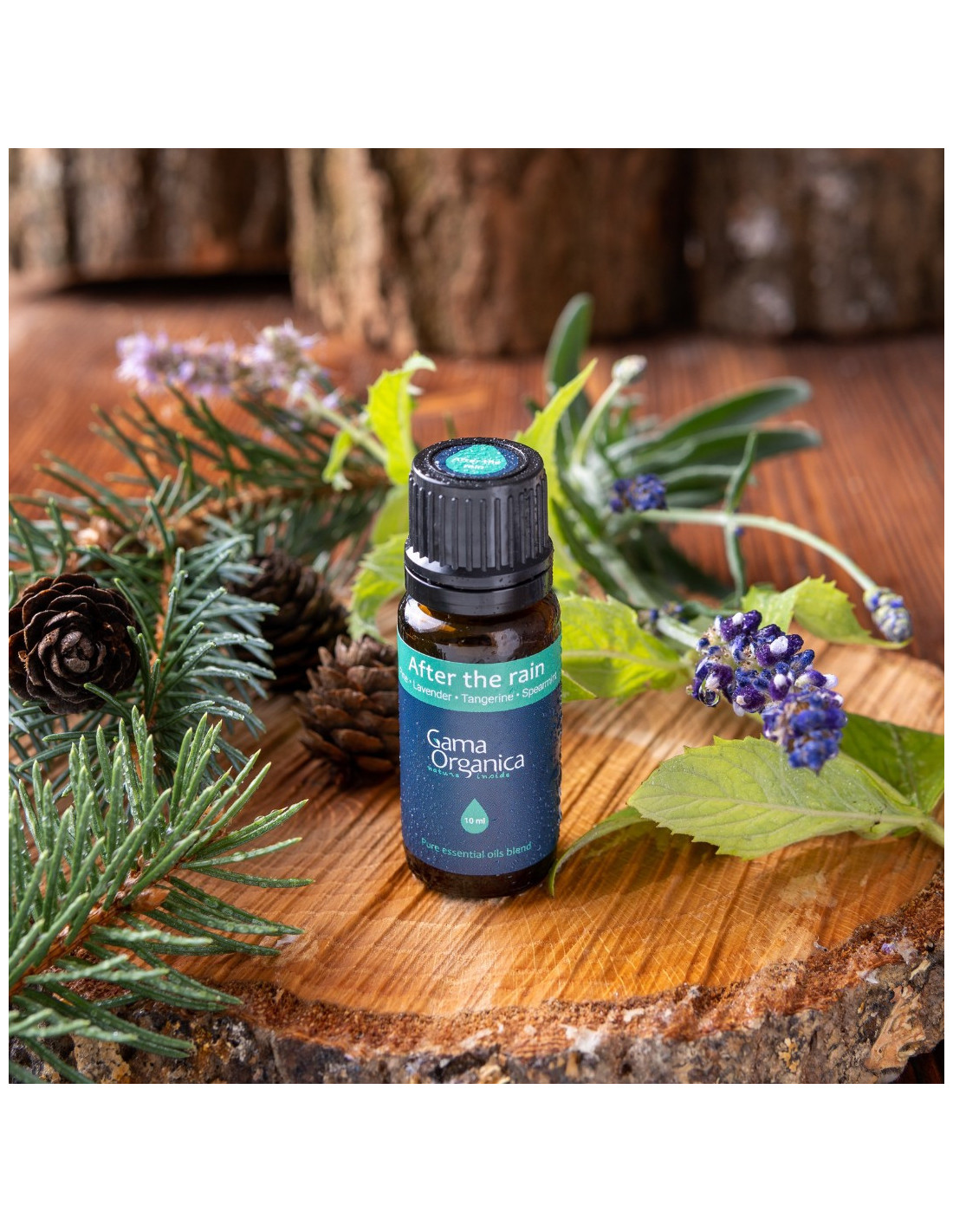 After The Rain е освежаващ ароматен бленд от чисти етерични масла, който ни напомня на разходка в гората след летен дъжд – дъхави борове, свеж въздух и простор. Композицията внася усещане за прохлада, чистота и естествена жизненост, като пречиства въздуха и освежава сетивата.