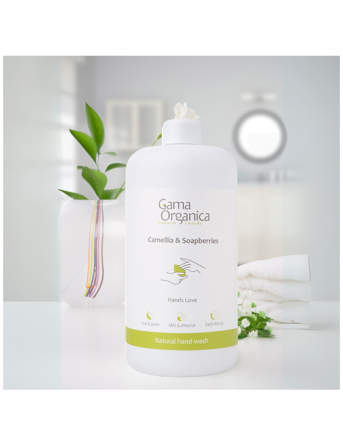 Натурален сапун за ръце, който съчетава в едно грижата за чистота с грижа за кожата на ръцете. Направен с натурални сапонини от Сапунени ядки и Камелия, за да поддържа ръцете чисти, меки и защитени всеки ден. Натуралните съставки и липсата на аромат го правят подходящ за всеки тип кожа, дори и за чувствителна.